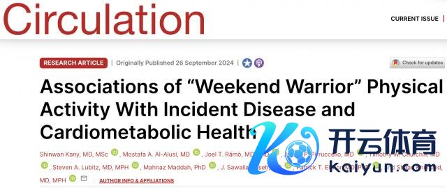 [ 2 ] Kany S, Al-Alusi M A, R ä m ö J T, et al. Associations of " Weekend Warrior " Physical Activity With Incident Disease and Cardiometabolic Health [ J ] . Circulation, 2024.
