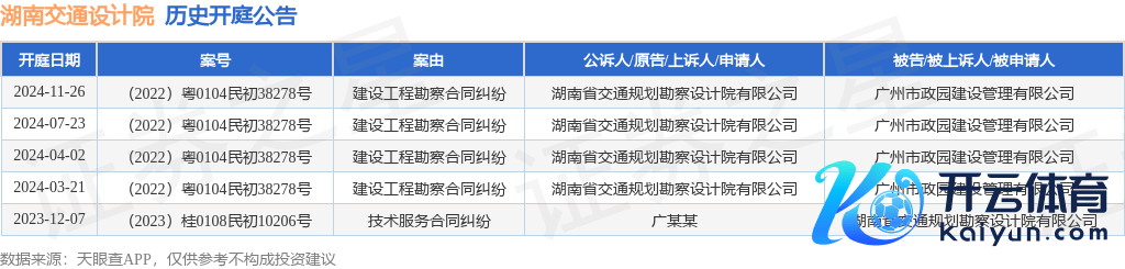 本站音书开yun体育网,凭据天眼查APP理会,近日公布了一则湖南省交通主见勘测盘算院有限公司动作原告/上诉东说念主的开庭公告,详备践诺如下: