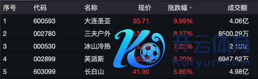 板块方面,冰雪旅游板块走强,大连圣亚涨停,三夫户外、冰山冷热、英派斯、长白山等个股涨超5%。