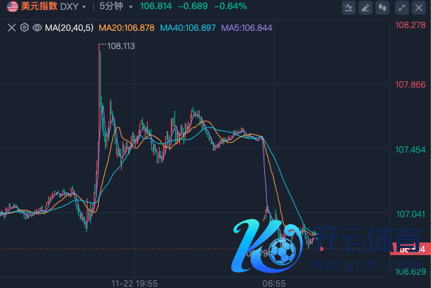 达成发稿,好意思元指数大跌0.64%,最新报106.814,实在回吐了上周五一皆涨幅。非好意思货币全线反攻,好意思元兑日元日内下落0.5%,一度跌破154。