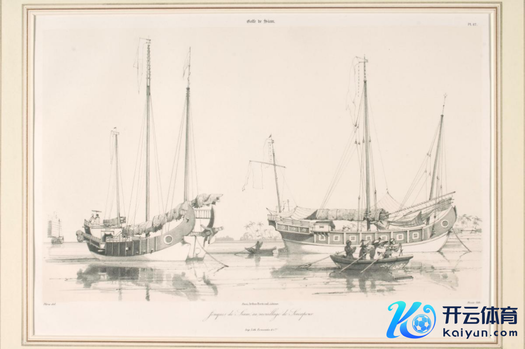 ▲靠岸在新加坡的暹罗商船,这显然即是中国船只,可见在古代中国船只在东亚和东南亚地区的影响力