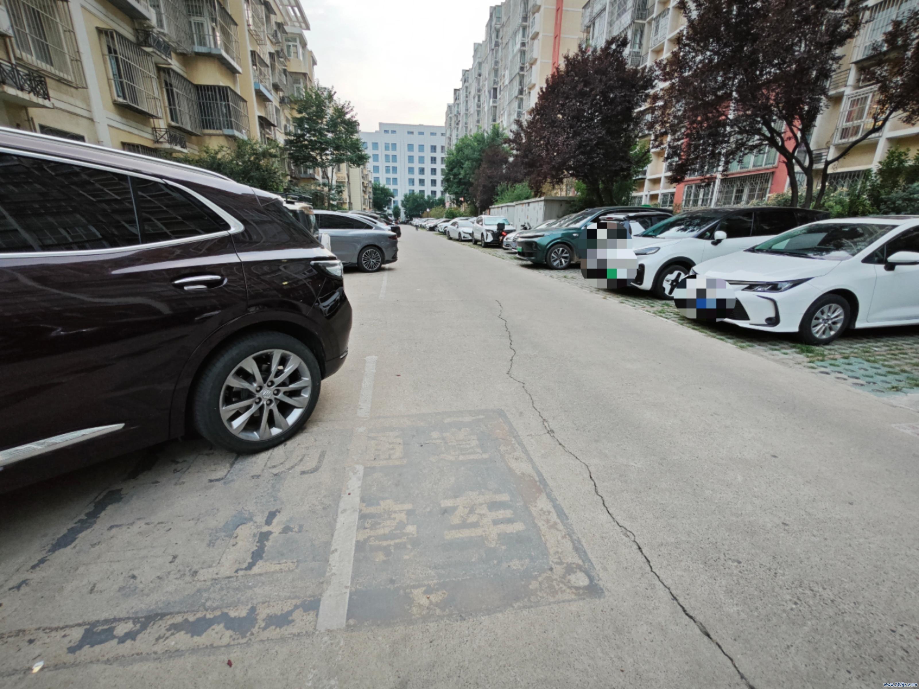 小区通谈上同期划有泊车白线和消防通谈绚丽。