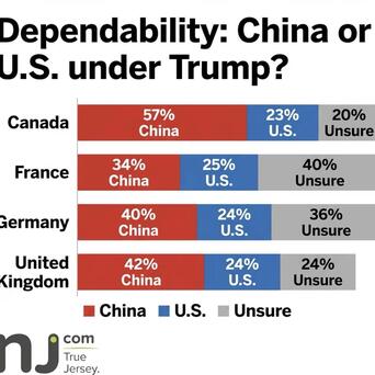 好意思国盛名媒体 Politico 最近的民调更添冲击力,针对加拿大、英国、德国、法国这四个好意思国传统铁杆盟友的造访败露,当被条目在中好意思之间二选一时,无数受访者竟不谋而合接纳了中国。其中加拿大的差距最为悬殊,57% 的东说念主觉得依赖中国更可靠,招供好意思国的仅占 23%;就连同根同源的英国,接纳中国的比例也显耀跳动好意思国。