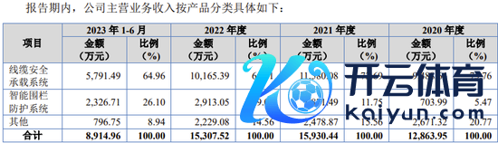 2020年、2021年、2022年及2023年上半年,线缆安全承载系统孝顺收入占比分手为73.76%、72.69%、66.41%及64.96%,占比捏续下落;智能围栏小心系统孝顺收入占比分手为5.47%、11.57%、19.03%及26.10%,占比捏续上升。