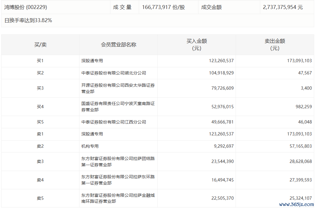 鸿博股份当天涨停 股通专用席位买入1.23亿元并卖出1.73亿元鸿博股份当天涨停 股通专用席位买入1.23亿元并卖出1.73亿元